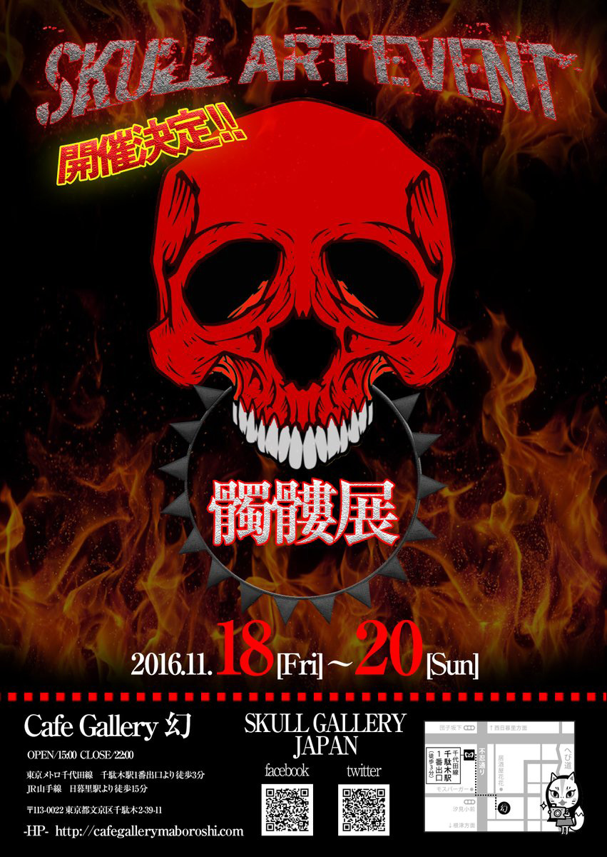 2016年11月18日(Fri.)-11月20日(Sun.)にかけて開催されるスカルアートイベント「髑髏展」への出展が決定。 |